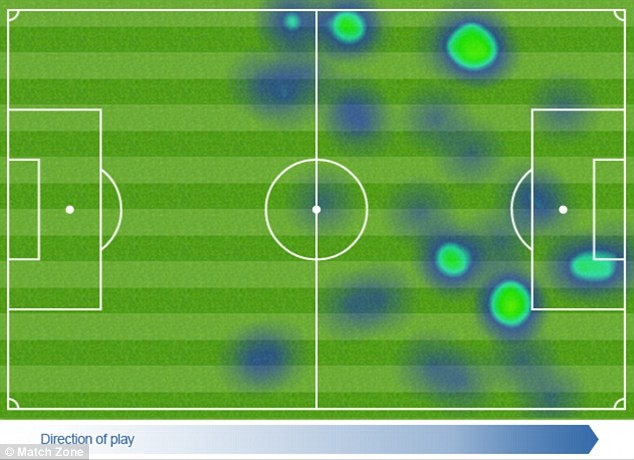 | Biểu đồ nhiệt mô tả tầm hoạt động của Luis Suarez trong trận hòa 1-1 trước Ả-rập Xê-út. |