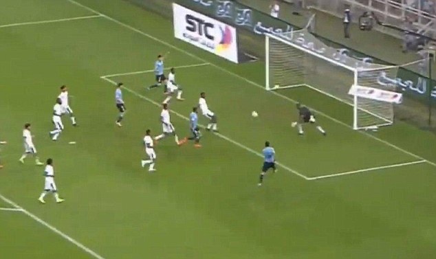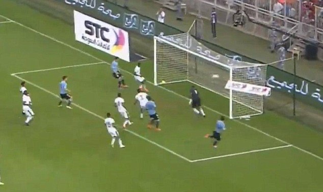Tuy nhiên, ở tình huống băng vào truy cản, hậu vệ Muath Fallatah lại để bóng đập chân dội ngược vào lưới nhà, giúp Uruguay vượt lên dẫn trước.
