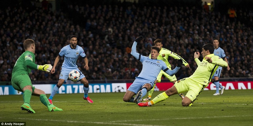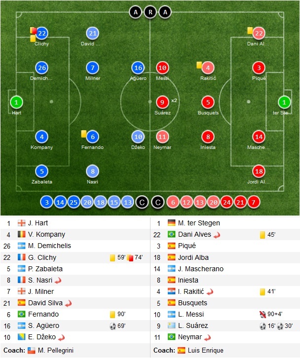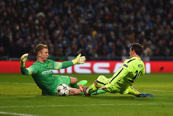 Phút 36, thủ thành Joe Hart kịp thời băng ra truy cản pha băng vào dứt điểm của Messi, giúp Man City tránh khỏi bàn thua thứ 3.