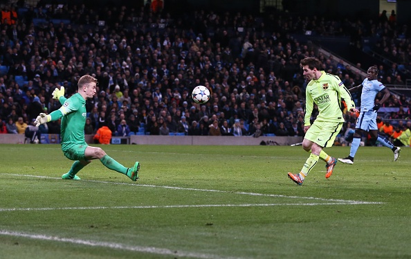 | Phút 90+4, Messi đem về cho Barca một quả phạt đền sau khi buộc Zabaleta phạm lỗi trong vòng cấm. Tuy nhiên, trên chấm 11 m, M10 lại không đánh bại được thủ thành Joe Hart. |