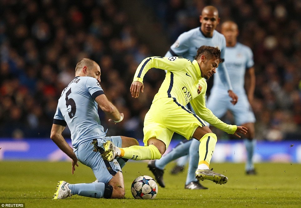 Trên đà hưng phấn, Barca tiếp tục dồn ép. Phút 26, cơ hội đã mở ra với Neymar nhưng ngôi sao người Brazil lại không đánh bại được thủ thành Joe Hart ở thế đối mặt.