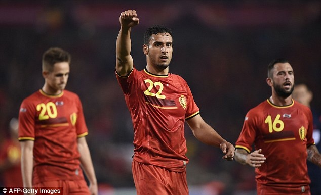 Nacer Chadli ăn mừng sau khi lập công cho ĐT Bỉ.
