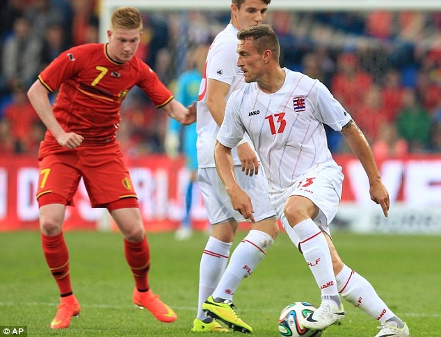 | Aurelien Joachim (phải) là cầu thủ ghi bàn thắng duy nhất cho ĐT Luxembourg. |