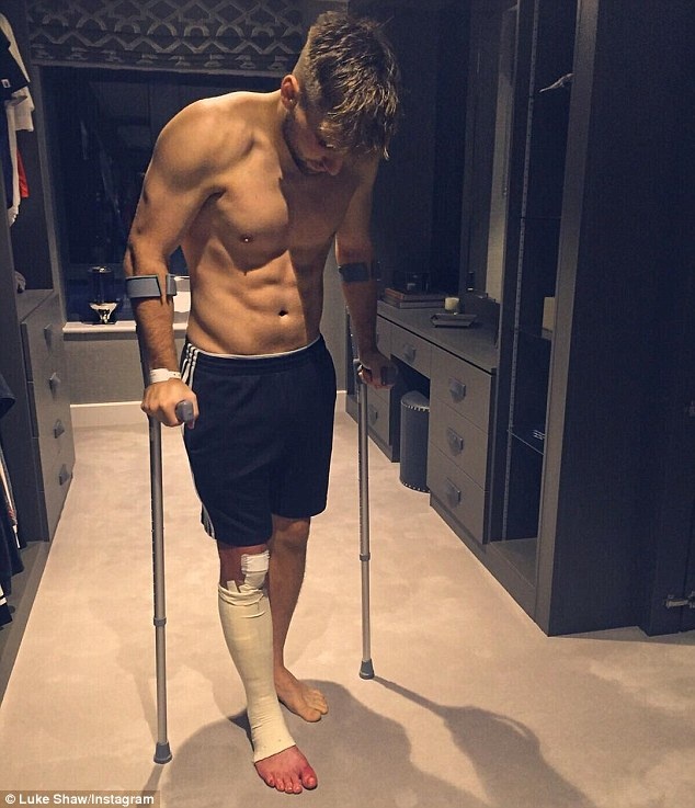 | Sau 2 lần phẫu thuật, Luke Shaw chia sẻ bức ảnh tập đi trên trang cá nhân Instagram. |