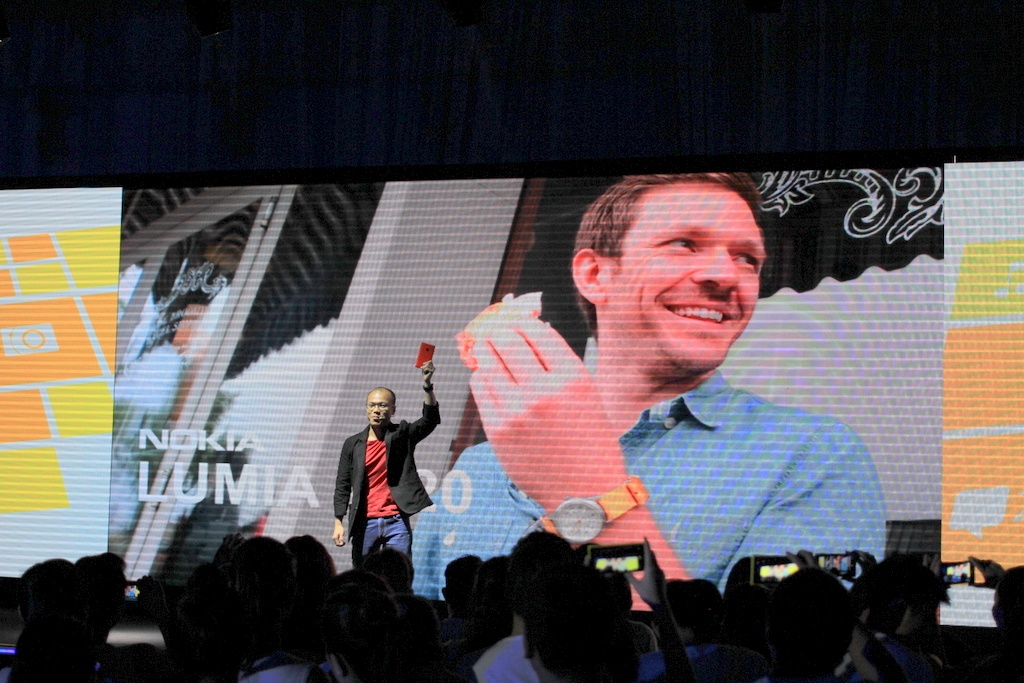 | Đại diện Nokia công bố mẫu Lumia 1520 trong sự kiện sáng nay. Ảnh: Quốc Huy. |
