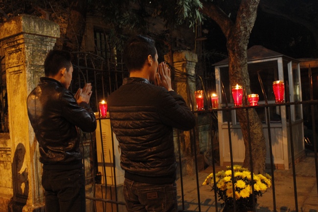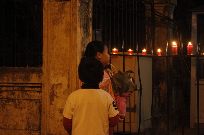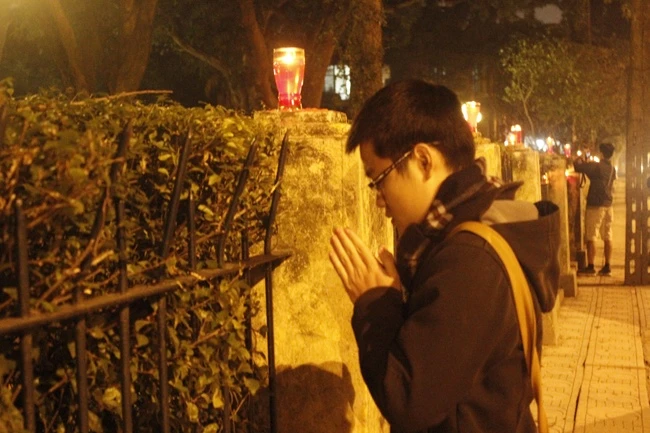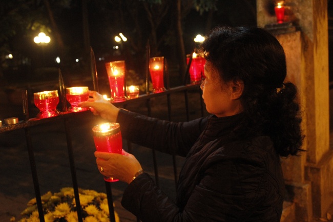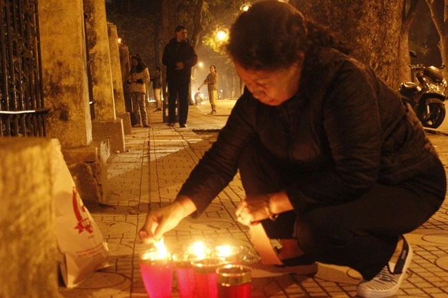 Người dân đốt nến trước nhà 30 Hoàng Diệu.