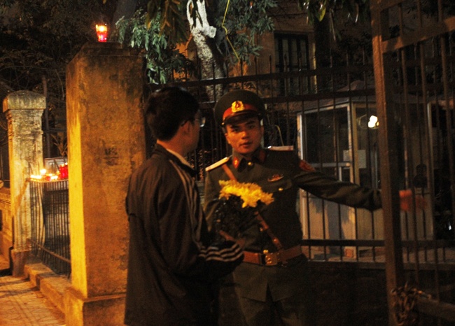 | "Nhân 49 ngày mất của Đại tướng, tôi đến đọc kinh dâng lên Đại tướng rồi nhìn vào nhà, hình dung bóng dáng Đại tướng thuở sinh thời... Đại tướng ra đi để lại mất mát lớn, giờ vẫn chưa nguôi", người phụ nữ tên An, đêm qua đau đáu trước cánh cổng số 30 Hoàng Diệu, bộc bạch. |