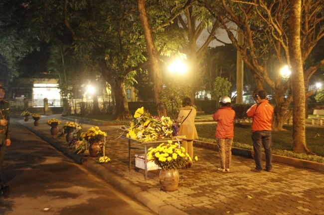 Hoa xếp hàng dài bên lối đi nhà Đại tướng. Thường xuyên có những người dân kính cẩn vái vọng trước nhà...