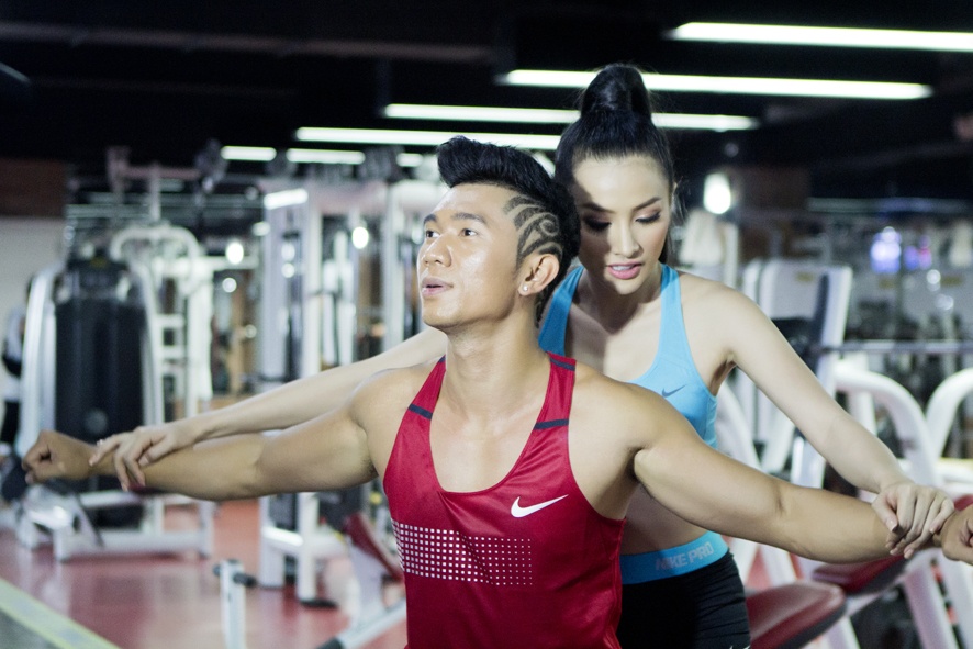 Là người có kinh nghiệm và đam mê với thể dục thể thao, Lương Bằng Quang hướng dẫn bạn gái tập luyện. Được bạn trai động viên, nữ diễn viên Âm mưu giày gót nhọn ngày càng tiến bộ. |
