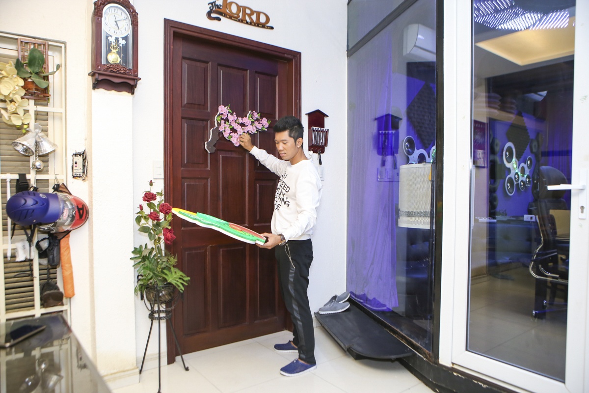 | Lương Bằng Quang cho biết, anh tạm ngừng công việc vào những ngày cuối năm để dọn dẹp, bày trí lại căn hộ đang sống ở TP HCM. Chiều ngày 29 Tết, một mình nhạc sĩ sắp xếp đồ đạc còn mẹ anh đi chợ, chuẩn bị bữa cơm cúng đêm giao thừa. |