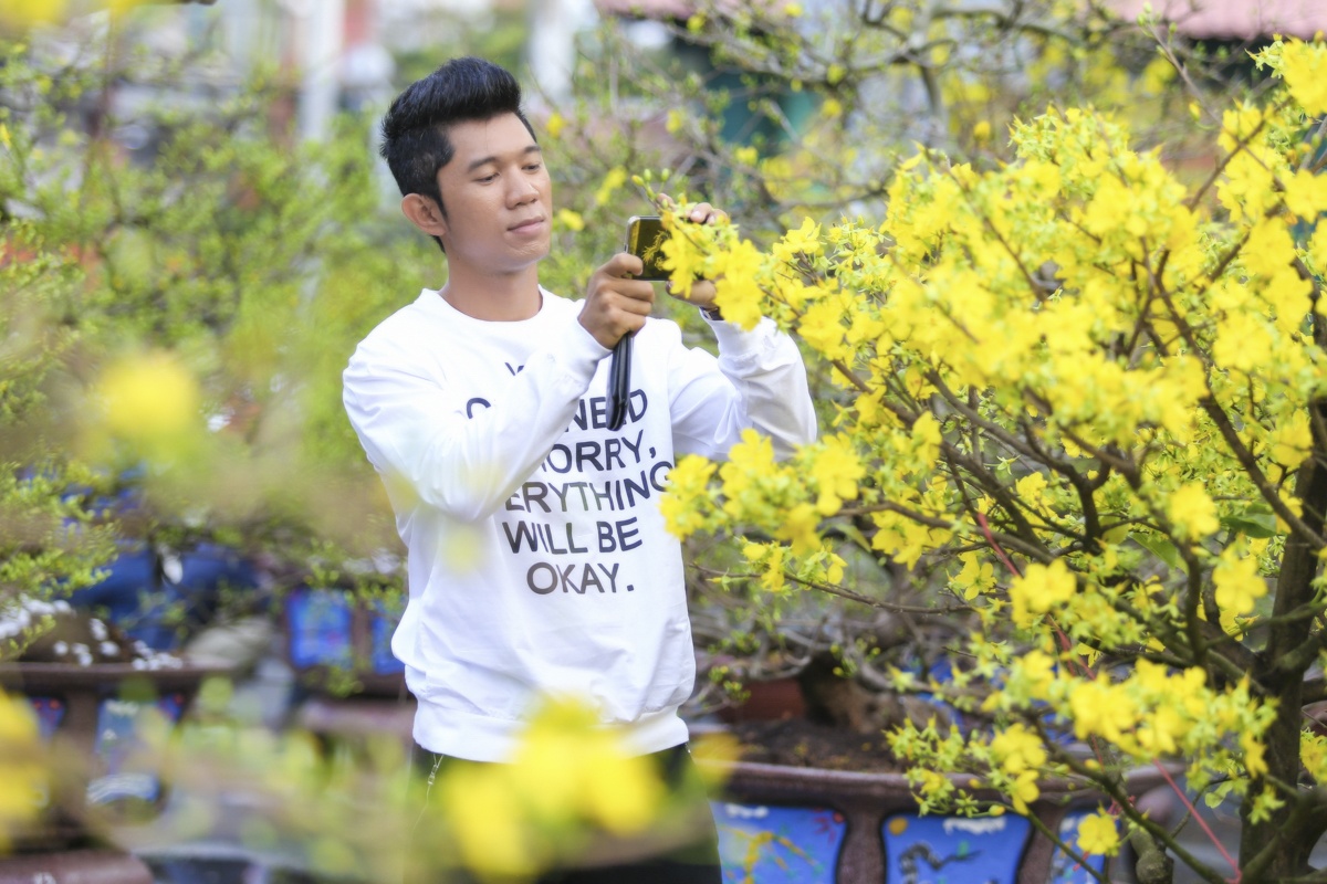 | Sau gần một ngày làm mới căn hộ riêng, anh một mình lái ô-tô đến chợ hoa gần khu vực đang sống để chọn mua một chậu mai phù hợp với không gian căn hộ. |