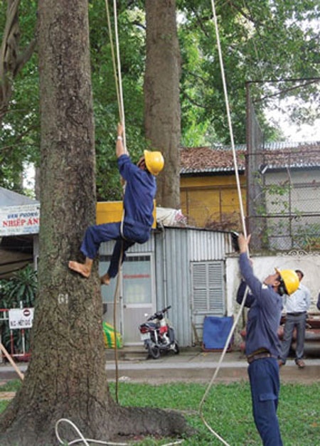 | Nhân viên công ty Công viên cây xanh lao động vất vả, nguy hiểm. |
