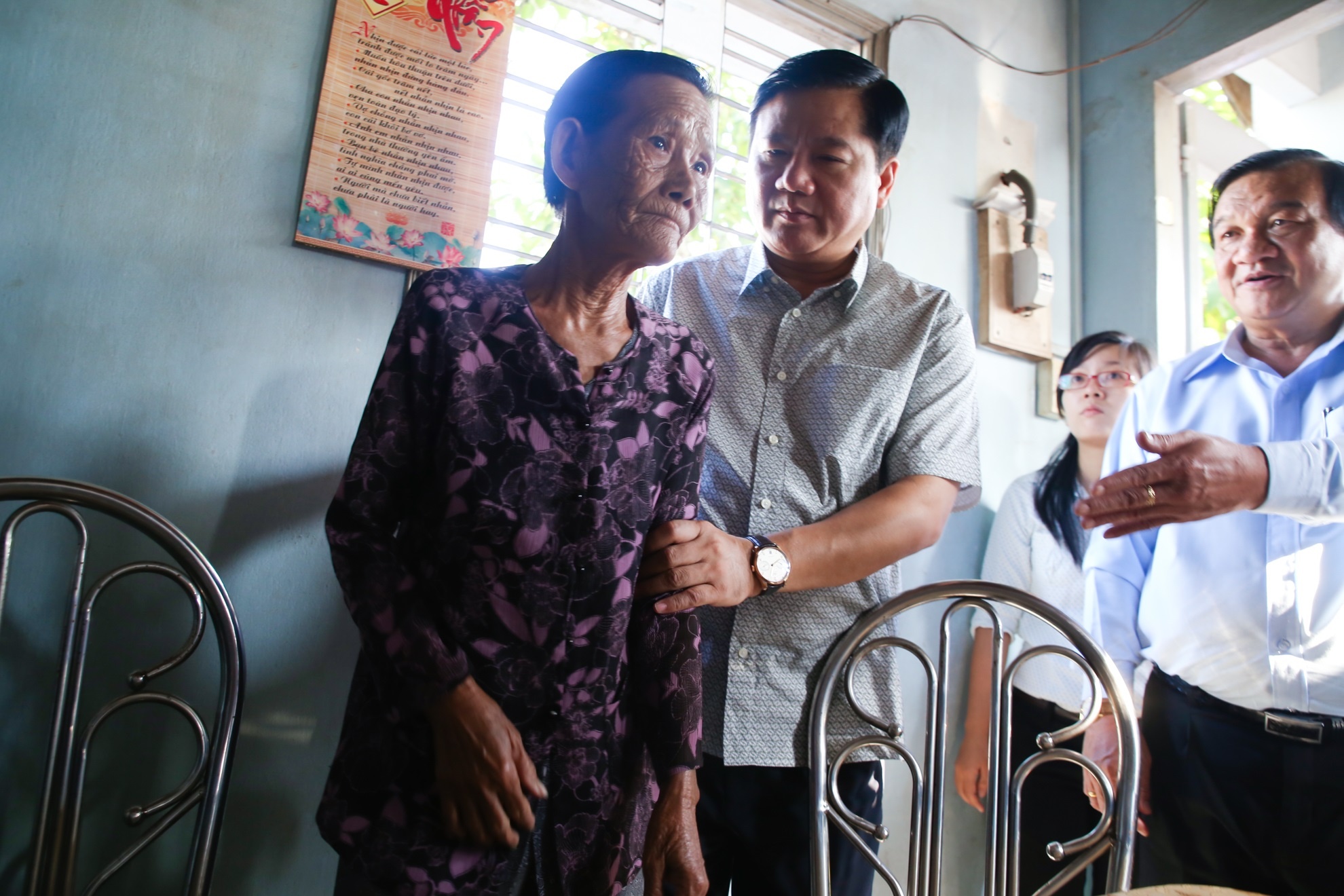 | Ông Đinh La Thăng thăm bà Lê Thị Kiều Oanh, vợ liệt sĩ, sáng 18/2. Ảnh: Hải An. |
