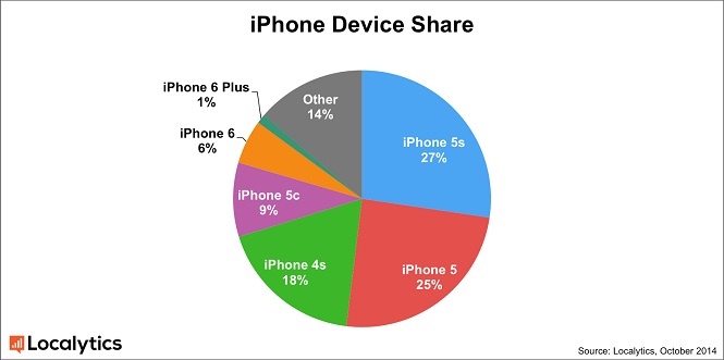 Số liệu thống kê cũng hé lộ xu hướng người dùng có vẻ quan tâm đến iPhone 6 nhiều hơn so với iPhone 6 Plus. Các số liệu này đến từ Localytics, một chương trình thống kê được thực hiện bằng cách theo dõi 28.000 ứng dụng trên các nền tảng và website khác nhau. Dự án này cũng thu thập số liệu từ 40 triệu chiếc iPhone đang hoạt động, qua đó cho thấy iPhone 6 hiện chiếm khoảng 6% hệ sinh thái iPhone, trong khi đó iPhone 6 Plus chỉ chiếm 1%. iPhone 5S và 5C vẫn chiếm đa số với tỷ lệ lần lượt là 27% và 25% tổng số iPhone đã được kích hoạt. Kết quả thống kê còn cho thấy Phone 6 đạt được sức tiêu thụ tốt hơn so với iPhone 5S (cùng kì năm ngoái iPhone 5S chỉ đạt 3%).
