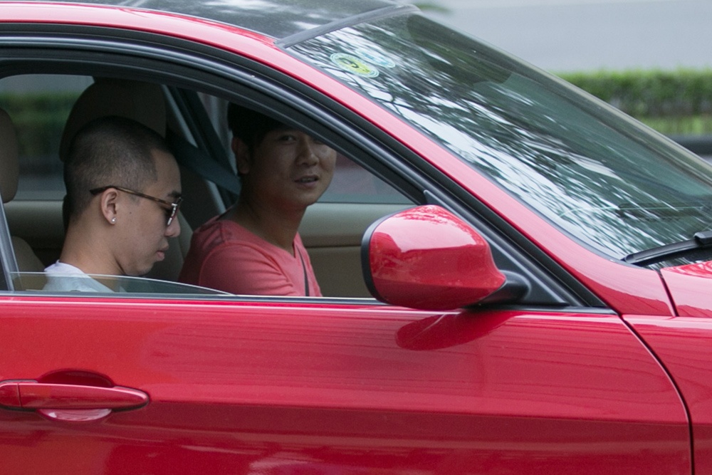 Cuối tuần qua, "Cu Tí" đích thân lái xe chở bà xã đến điểm hẹn uống cà phê cùng bạn tại một khu trung tâm. Anh không ngồi cùng vợ mà lái xe đi ngay.