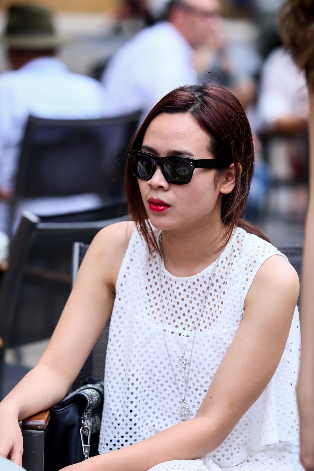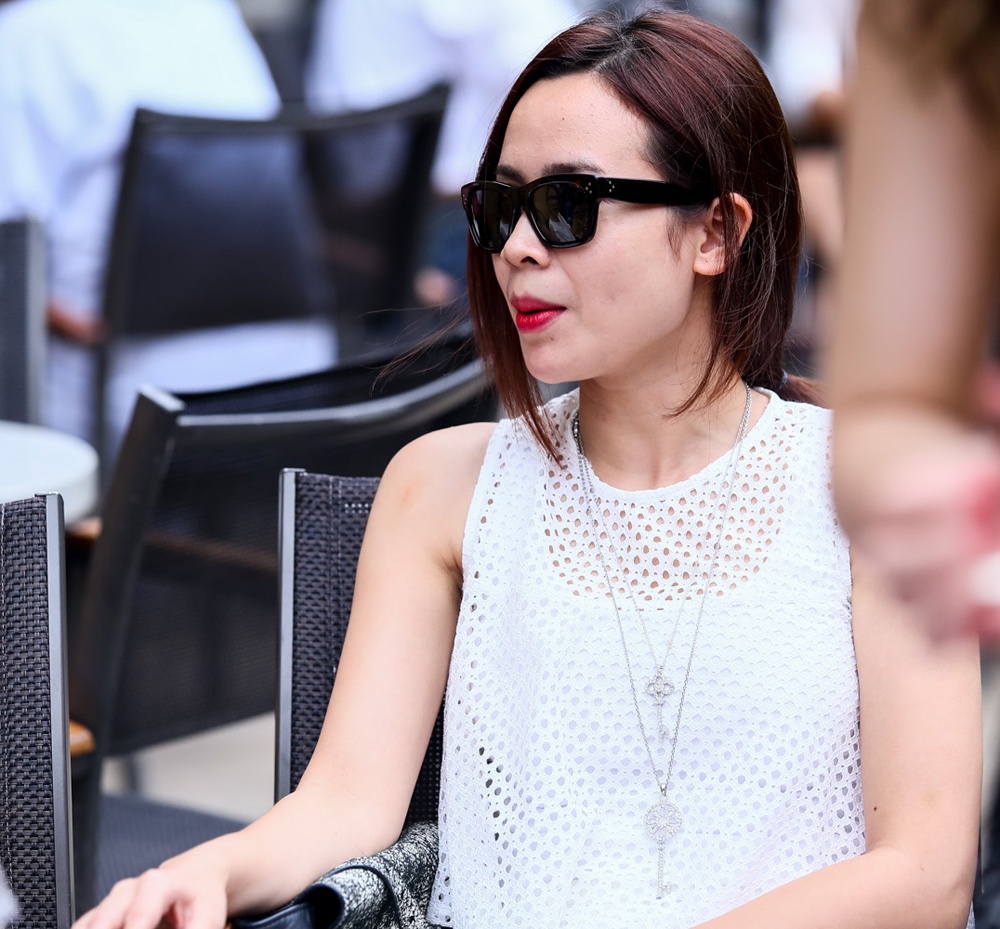 | Trong thời tiết Sài Gòn mát mẻ, bà mẹ một con diện nguyên cây trắng đi cà phê với bạn. Kể từ khi phải xuất hiện thường xuyên trên truyền hình, Lưu Hương Giang rất chú trọng về phong cách thời trang. |