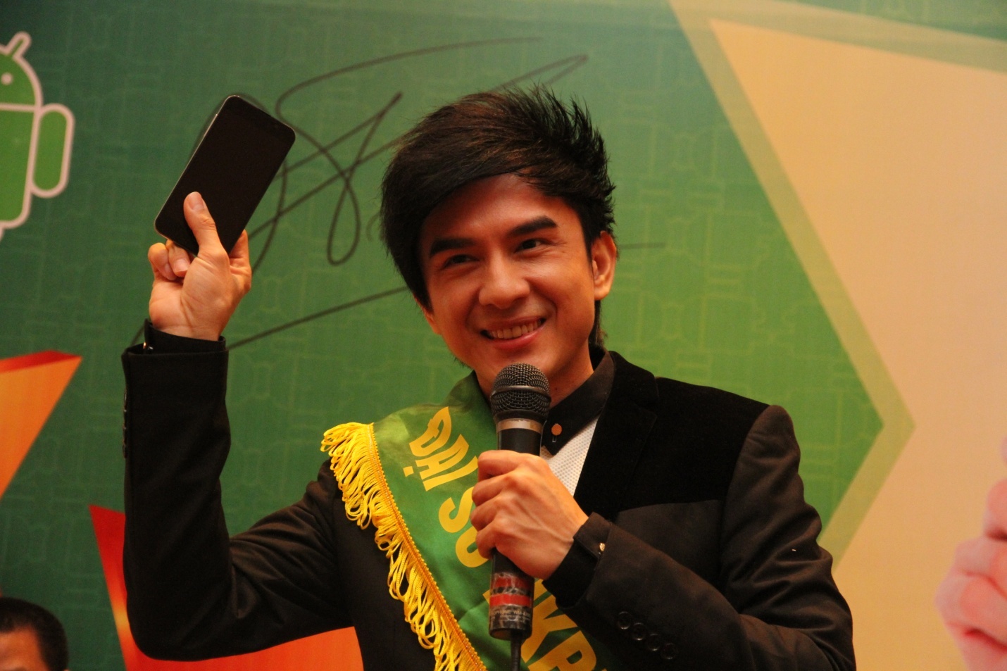 | Đan Trường tự tin quảng bá thương hiệu điện thoại Việt HKPhone. |