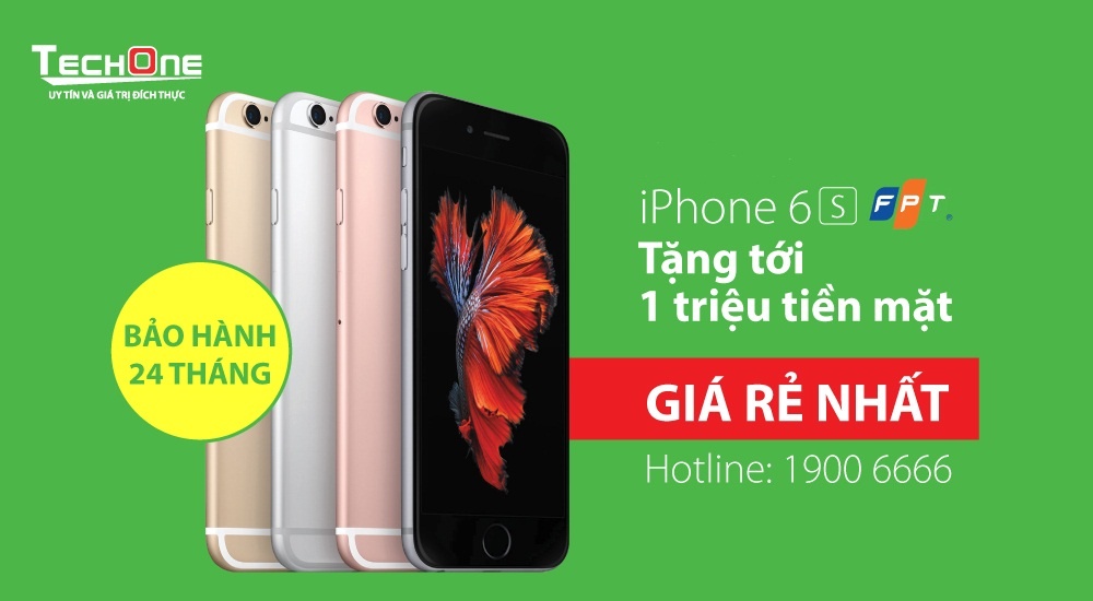 Cụ thể, iPhone 6S FPT giá chỉ còn 17,99 triệu đồng, giá niêm yết 18,99 triệu đồng, tặng ngay 1 triệu đồng. Khi mua iPhone 6S tại TechOne, ngoài được trừ tiền mặt trực tiếp trên đơn hàng, khách hàng còn nhận được những khuyến mãi sau: