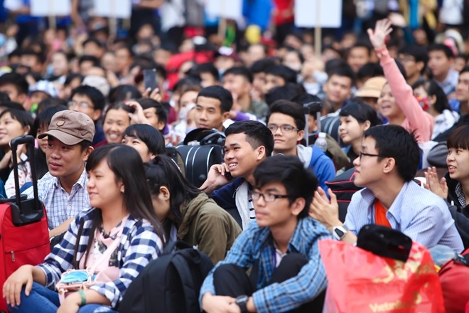 | Sinh viên tập trung để về quê dịp Tết. Đây là mơ ước của không ít du học sinh ngày cuối năm. |