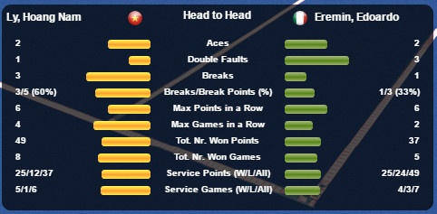 Chiến thắng ấn tượng ở các trận đấu vòng loại trước Youssef Hossam (Ai Cập) và Anthony Turchi (Pháp) giúp Hoàng Nam thêm phần tự tin ở cuộc đọ sức với Eremin Edoardo. Trước đối thủ hơn mình tới 847 bậc trên bảng xếp hạng ATP và là hạt giống số 3 của giải nhưng Hoàng Nam không hề nao núng.