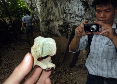 Chúng tôi đang quan sát thế núi thì bất ngờ anh Sơn phát hiện ra một khúc xương tay khá to. Theo anh Thuấn thì đây chỉ là một mẩu xương nhỏ còn nằm lại, những khúc xương to hơn vẫn còn chôn vùi bên dưới lớp đất mùn. Để kiểm tra độ chính xác, anh Thuấn lấy một que nhọn chọc thẳng xuống dưới lớp đất (chừng 50cm) thì quả nhiên vẫn còn hàng chục bộ quan tài.