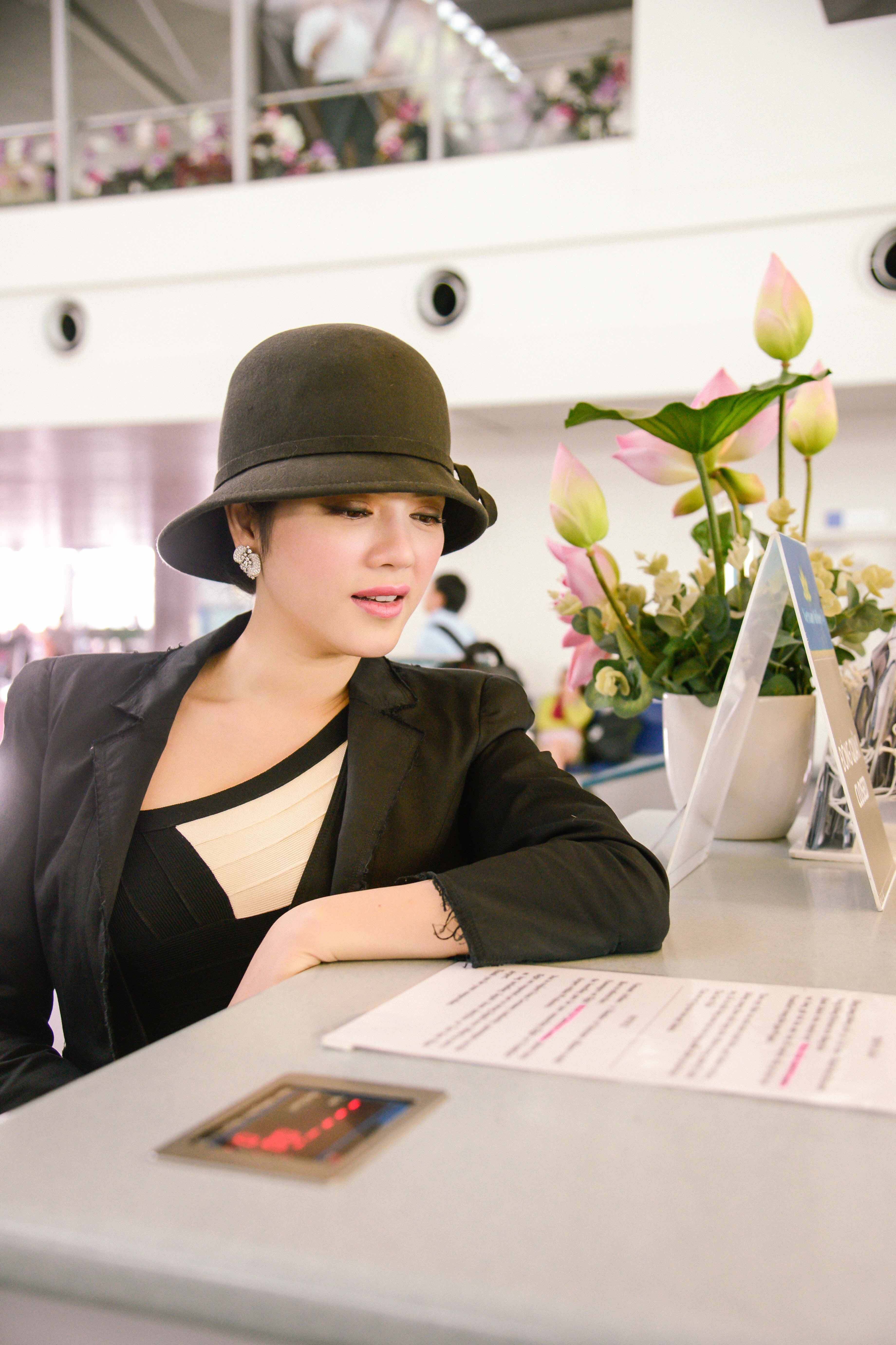 Lý Nhã Kỳ trong lúc đợi đến giờ lên máy bay.