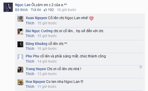 Sau khi nhận được lời nhắn nhủ, Ngọc Lan cũng gửi lời cảm ơn tới đàn chị.