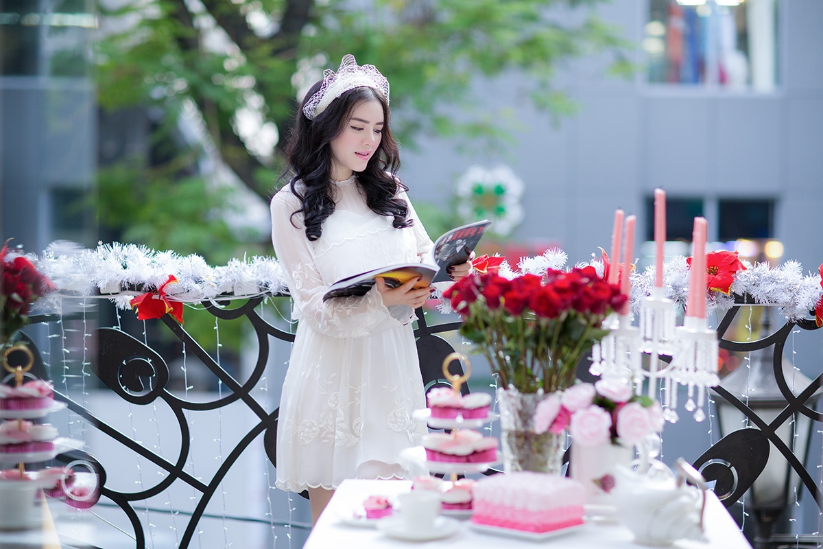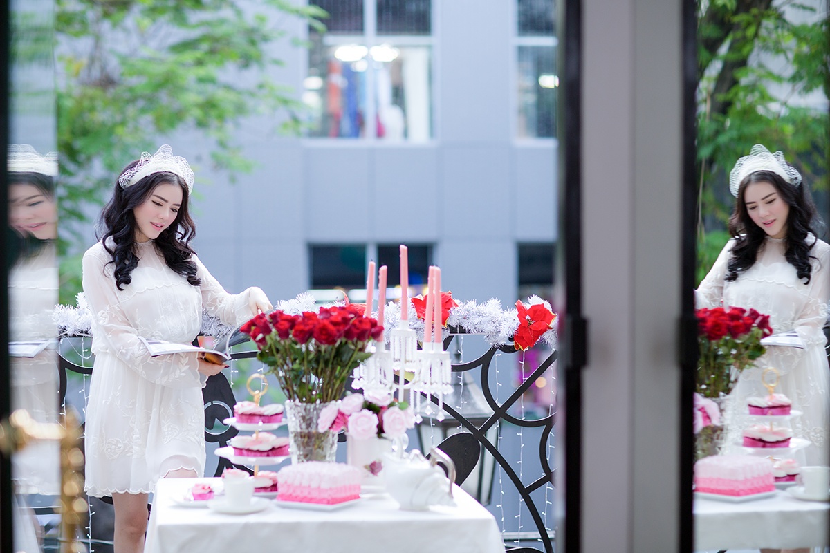 Dịp đầu năm mới, Lý Nhã Kỳ giới thiệu đến người xem bộ ảnh mới, mang đậm phong cách lãng mạn và sâu lắng. Cựu đại sứ chia sẻ, cô đã tái hiện lại một không gian mang màu sắc khá quý tộc kiểu châu Âu nơi ban công nhà. Toàn bộ không gian sân thượng được set-up theo phong cách cổ điển với nến, bánh kem, những đóa hoa hồng ngọt ngào… để phục vụ cho buổi chụp ảnh.