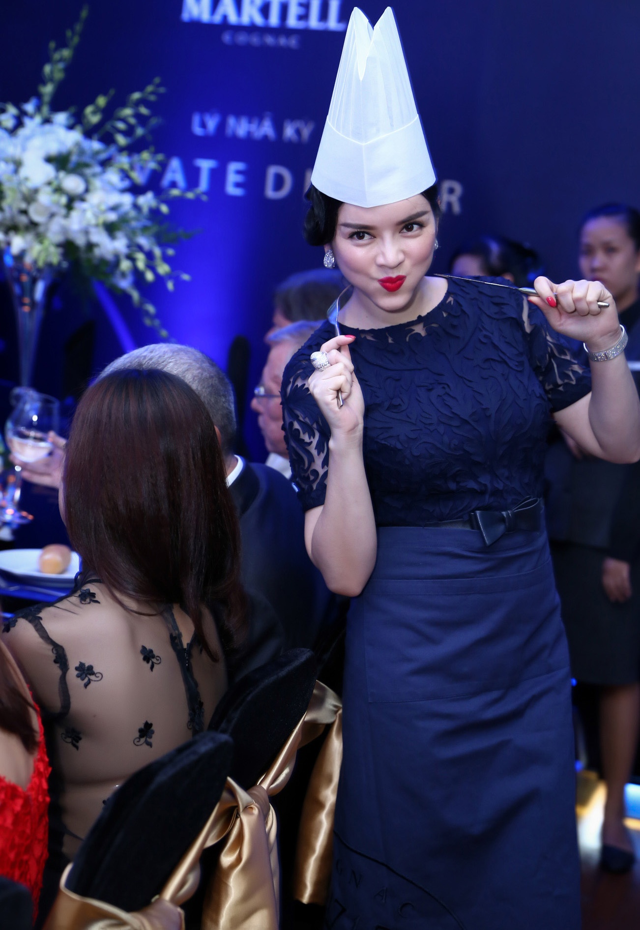 | Để gây bất ngờ cho quan khách, Lý Nhã Kỳ đã vào tận bếp để cùng với người đầu bếp nổi tiếng - Eric Danger mà cô mời từ Pháp sang, chuẩn bị đồ ăn cho khách. |