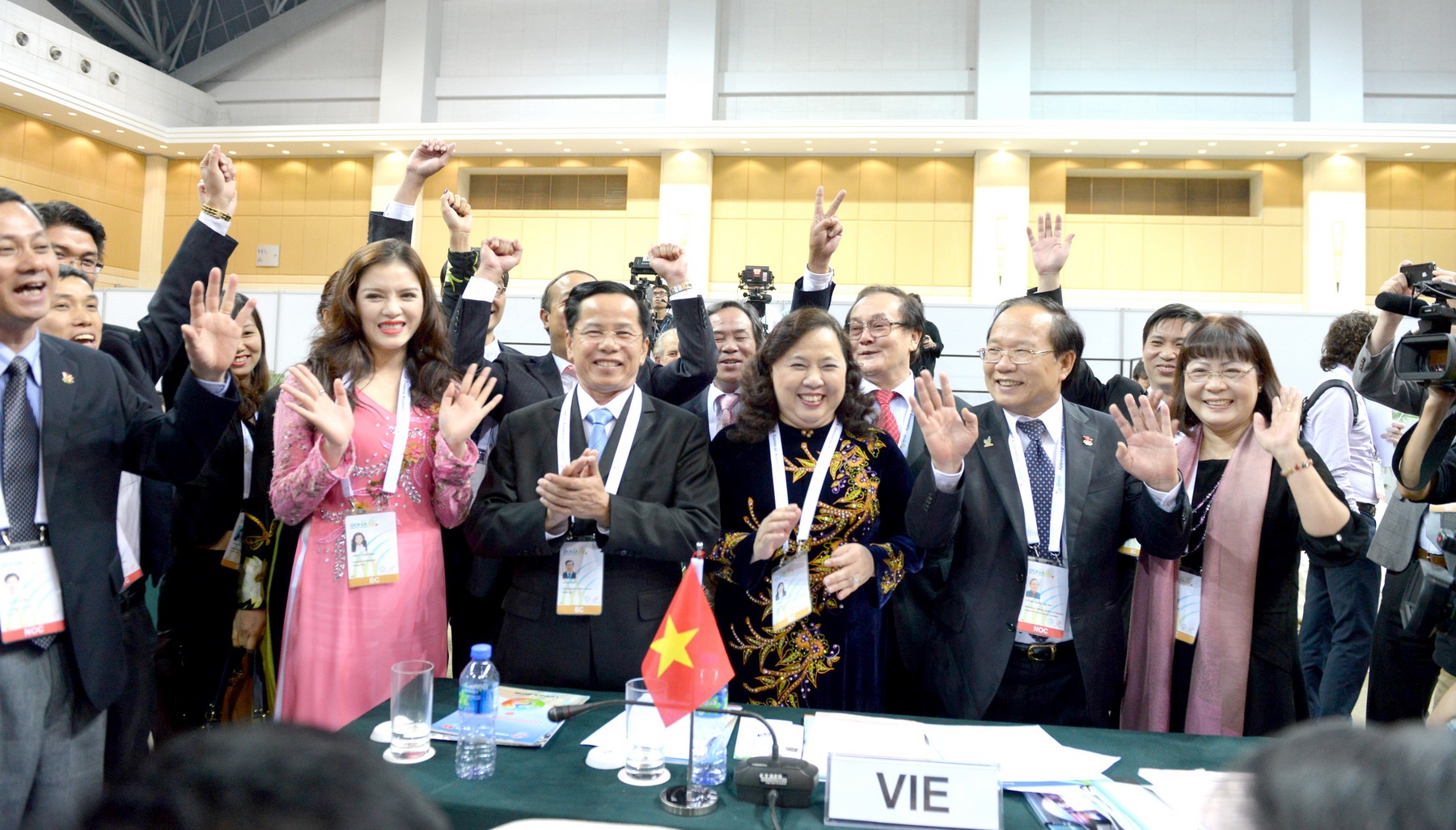 | Đoàn Việt Nam vui mừng khi bạn bè quốc tế bỏ phiếu đăng cai ASIAD 18. |
