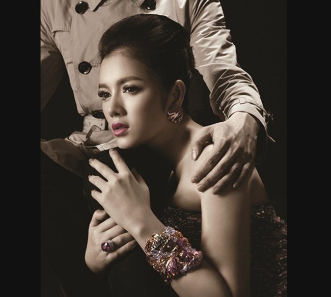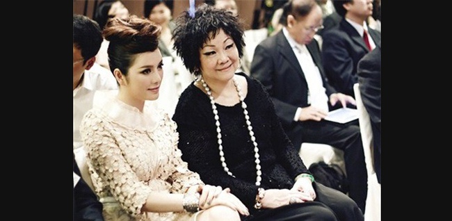| Cô tỏ ra sang trọng, quý phái khi ngồi cạnh mẹ nuôi là tỷ phú người Hong Kong. |
