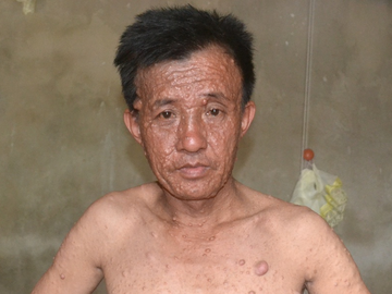 Hàng chục năm nay, ông Thành mang trên mình chi chít các khối u thịt thừa. Không những vậy, cả 3 người con cũng mắc bệnh như ông.