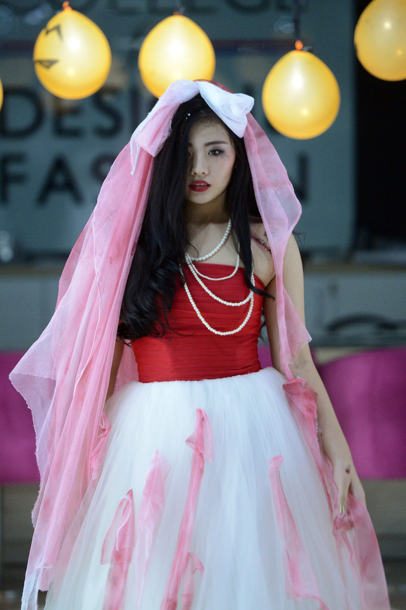 Lee Mun Hee - nữ sinh người Hàn Quốc - lựa chọn cho mình cách hoá trang thành cô dâu ma quỷ, với lưỡi dao sắc nhọn trên tay.