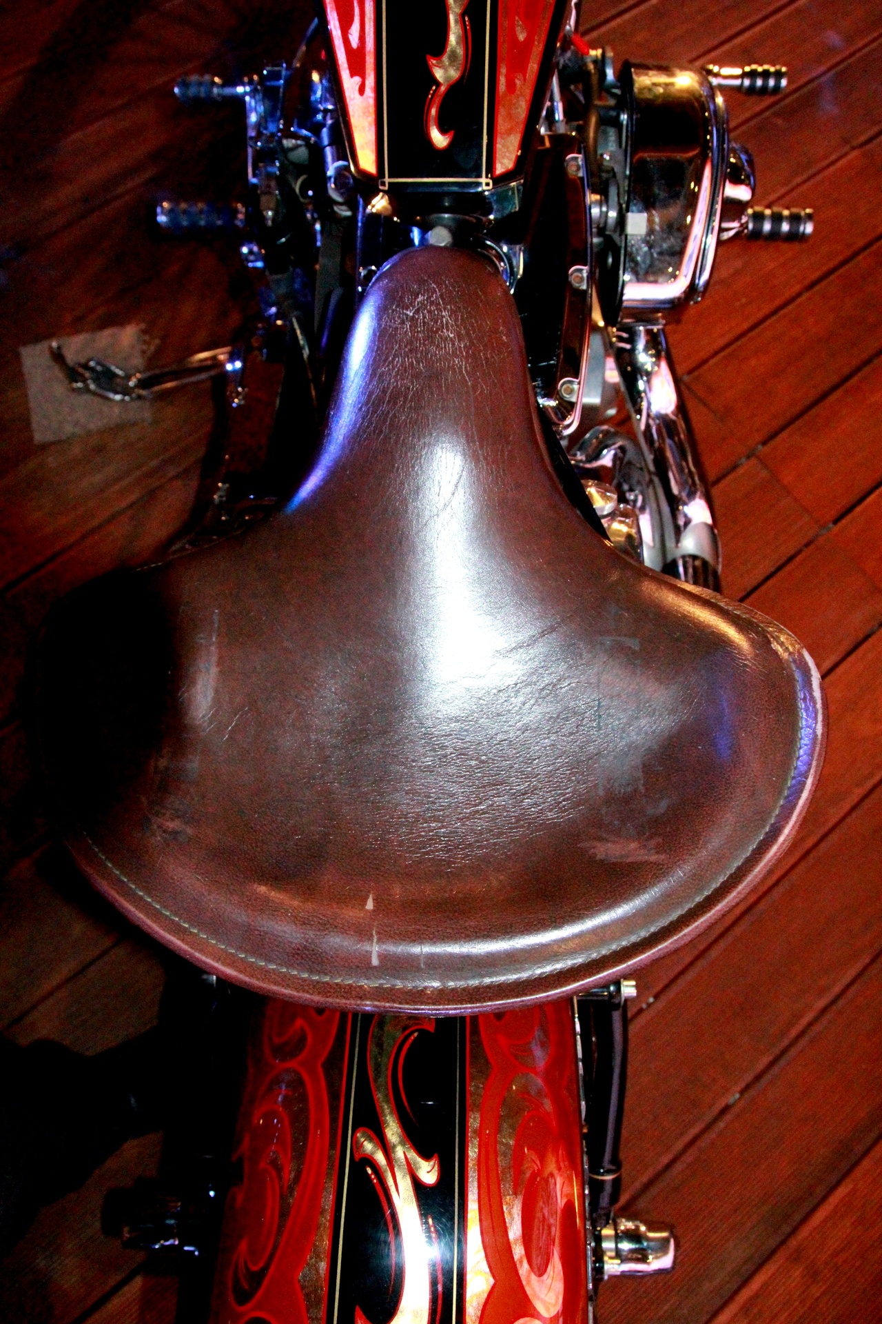 | Yên xe một chỗ ngồi làm bằng da thật. |