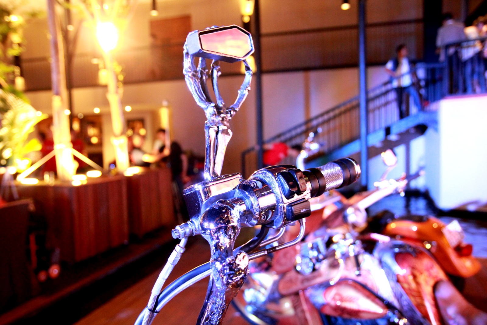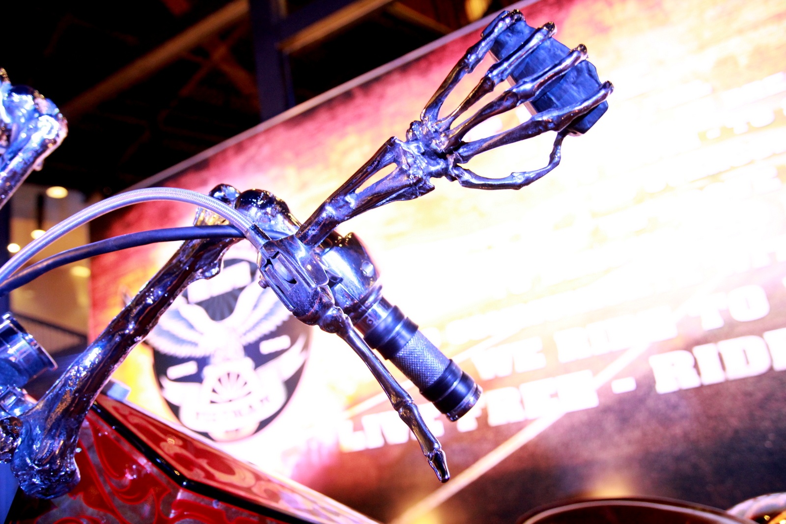 | Xương bàn tay nắm chiếc gương chiếu hậu, trong khi tay phanh cũng được đúc theo dạng khớp xương ngón tay. |