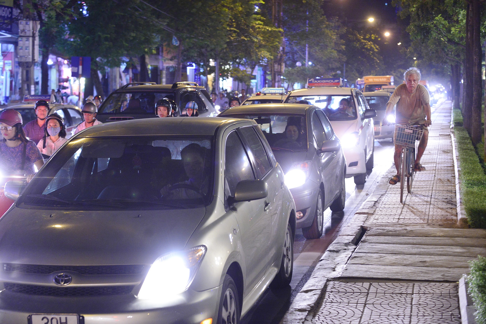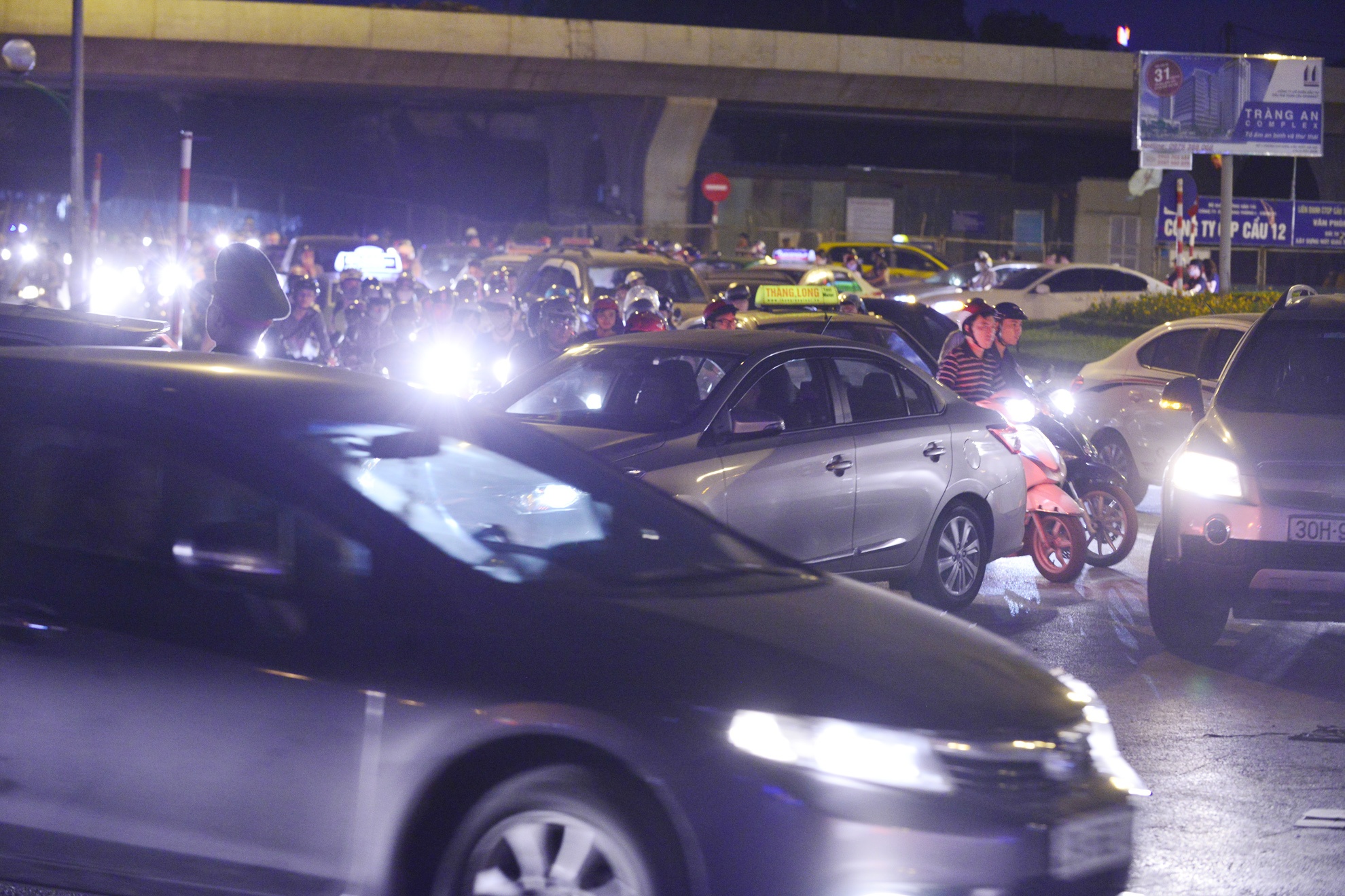 Cuối giờ chiều, nhiều xe dồn vào đường Hoàng Quốc Việt khiến giao thông ùn ứ.