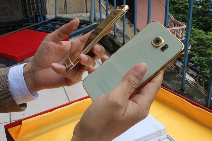 Để phủ lớp vàng 24K lên khung viền, cụm camera của máy, người dùng phải bỏ thêm gần nửa giá tiền của một chiếc Galaxy S6 chính hãng, vốn có giá 16,59 triệu đồng.