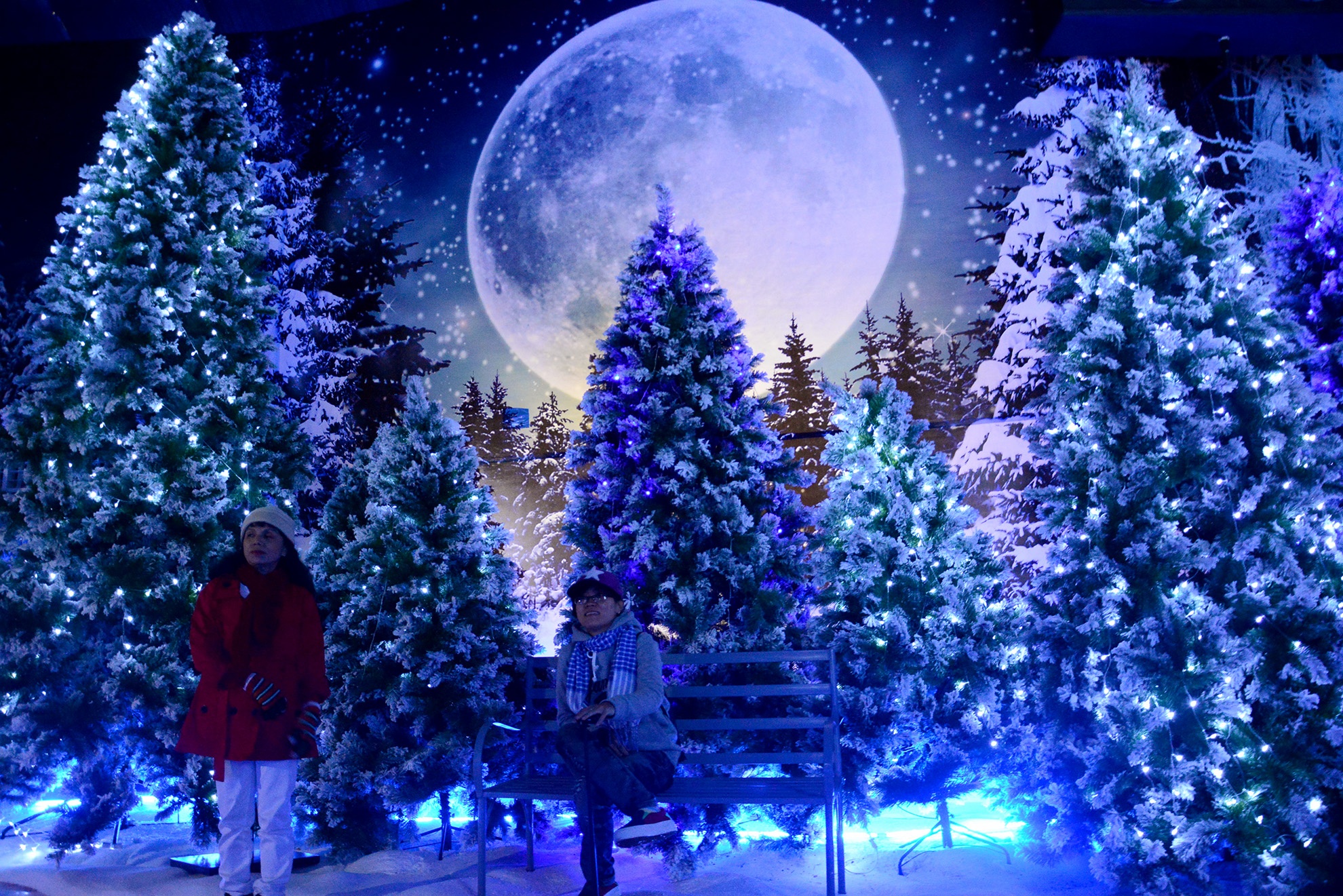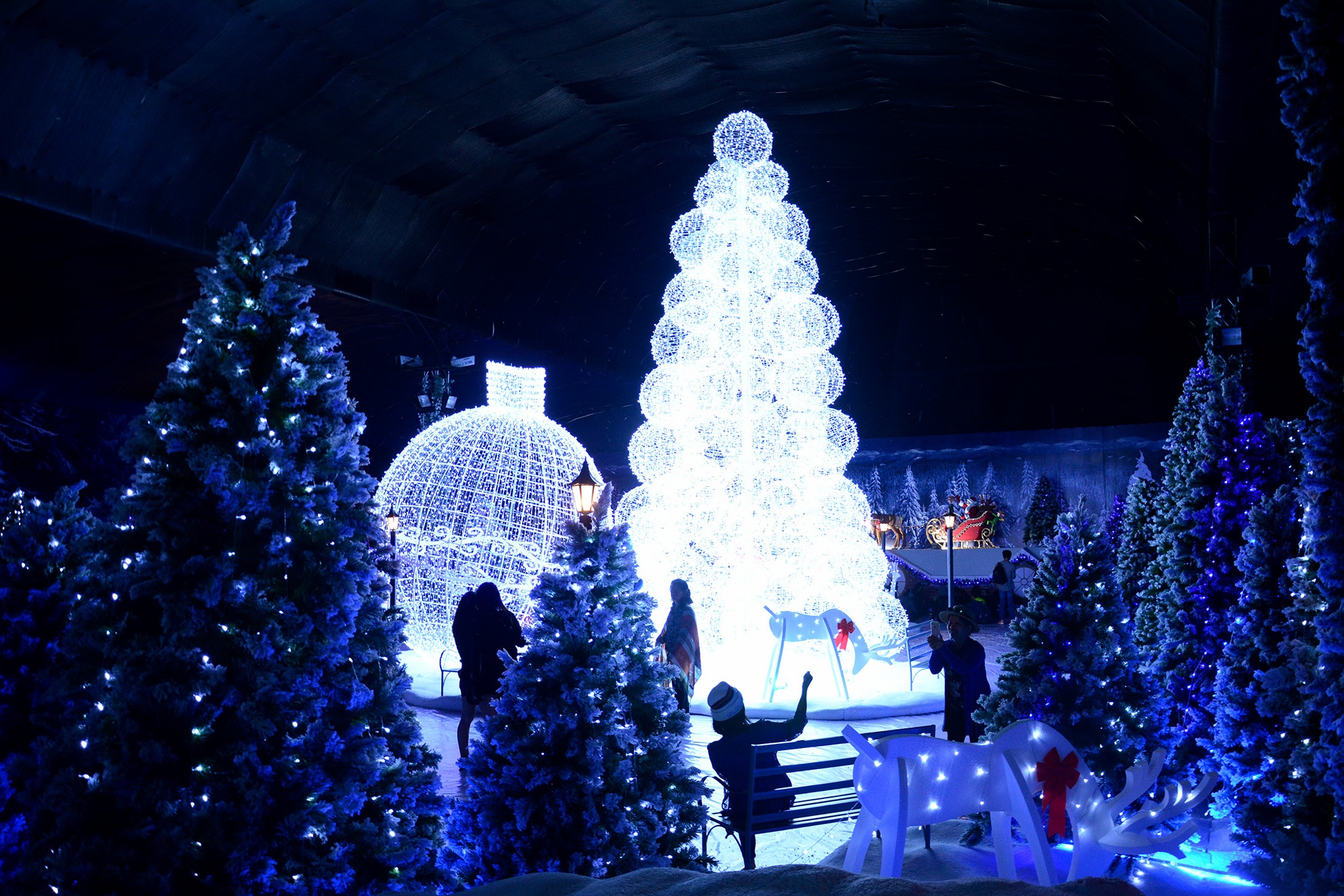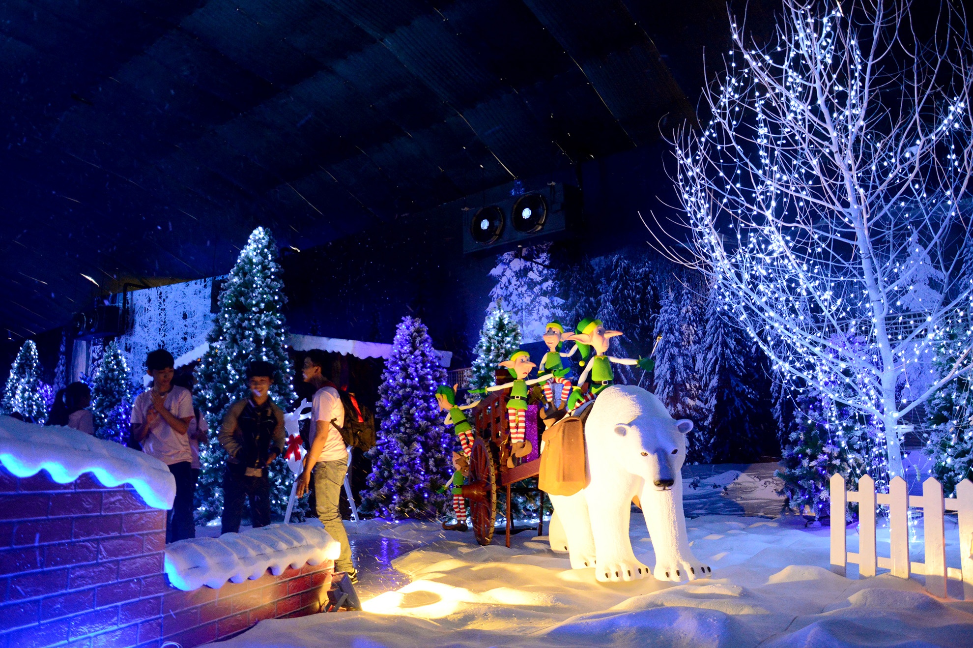 | Nơi đây được trang trí theo khung cảnh Giáng sinh châu Âu, rộng 2.000 m2 với rừng thông bao phủ bởi tuyết nhân tạo trắng xóa. |