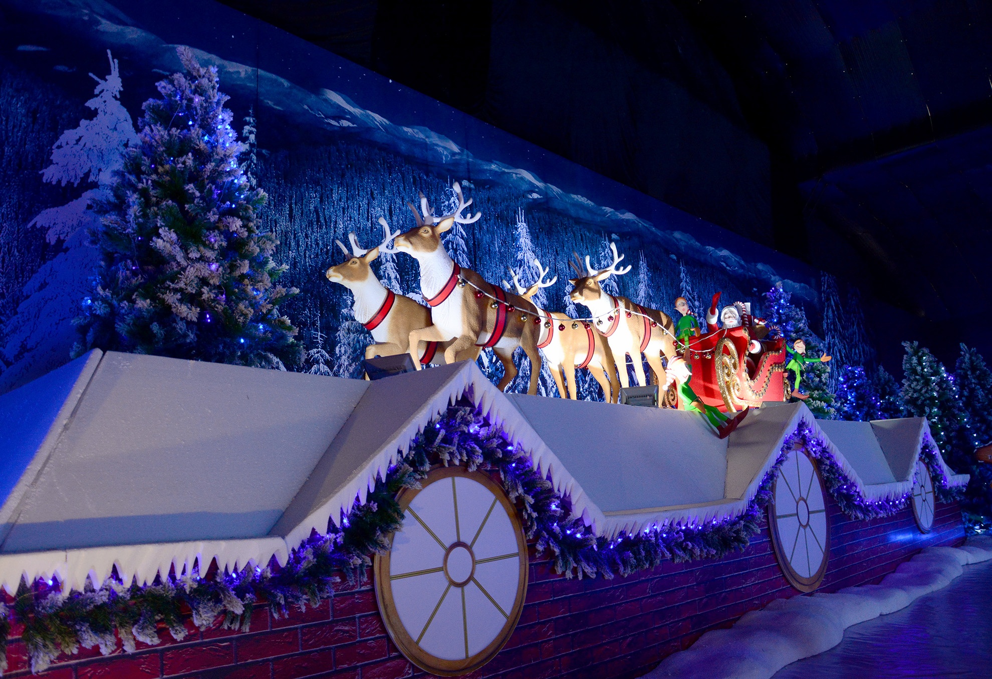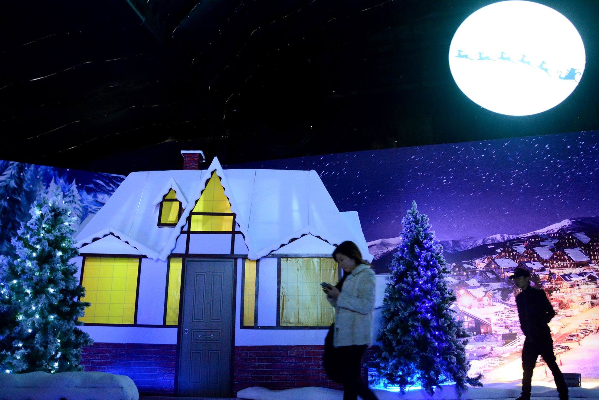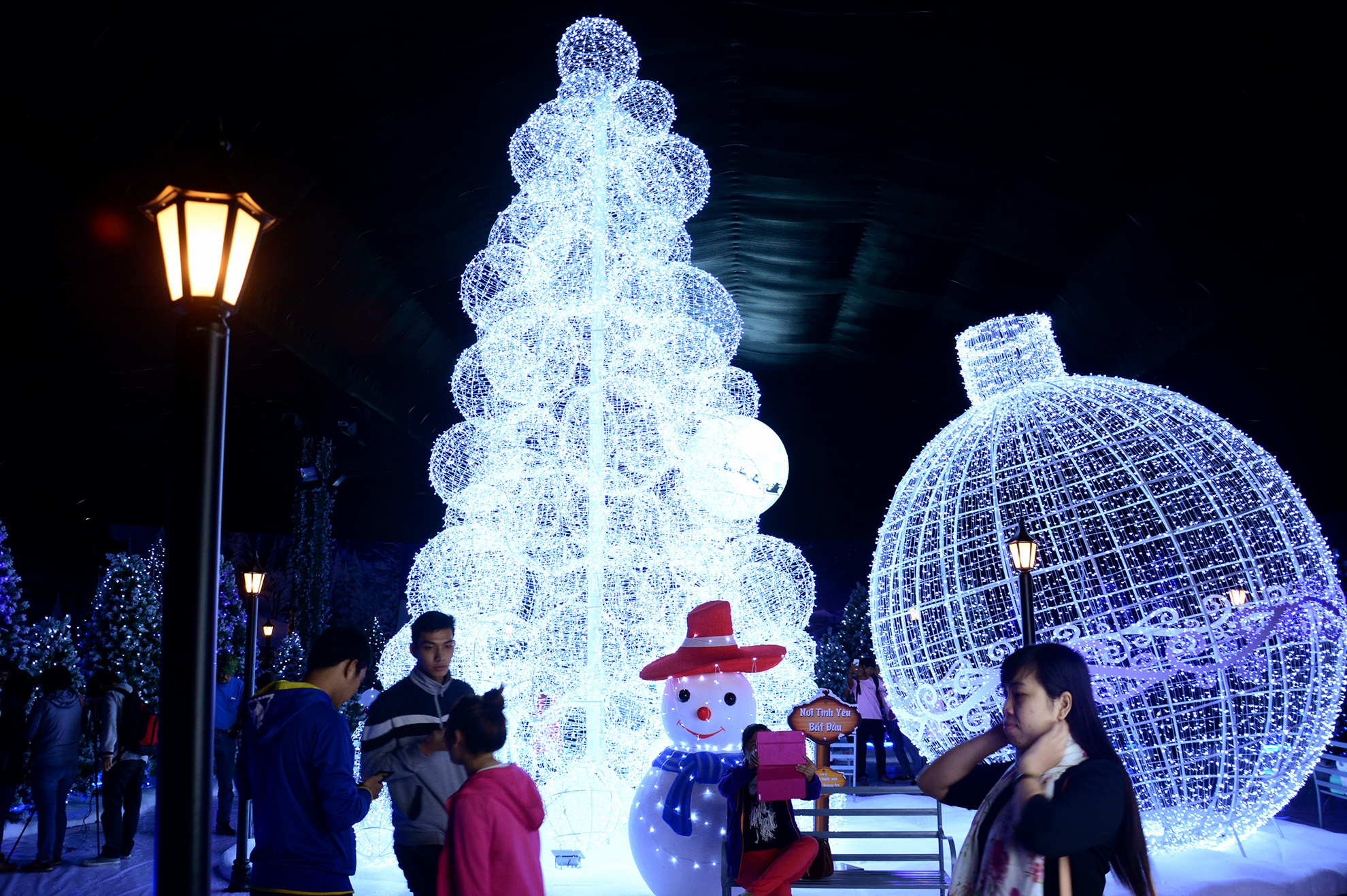 | Nơi đây được trang trí theo khung cảnh Giáng sinh châu Âu, rộng 2.000 m2 với rừng thông bao phủ bởi tuyết nhân tạo trắng xóa. |