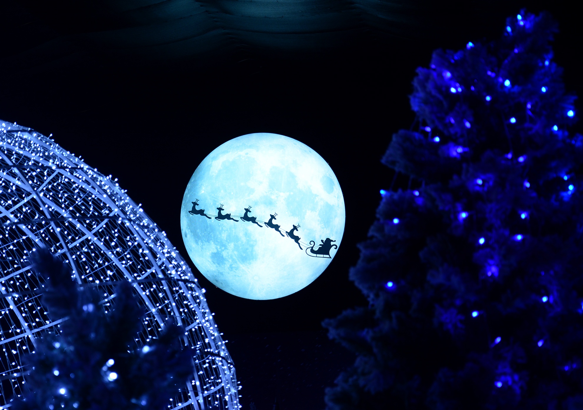 | Hình ảnh những chú tuần lộc kéo xe ông già Noel bay qua ánh trăng cũng được tái hiện sinh động. |