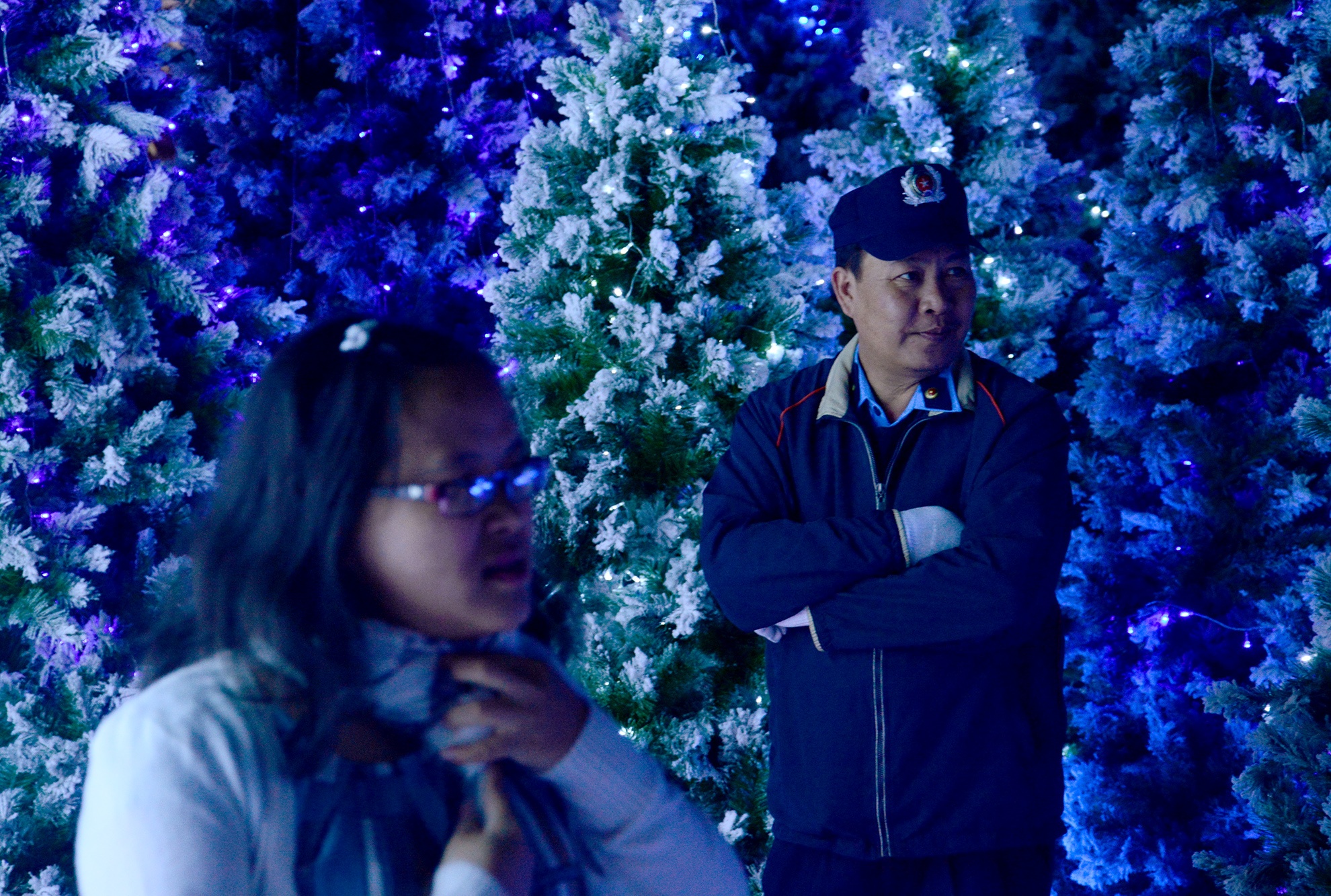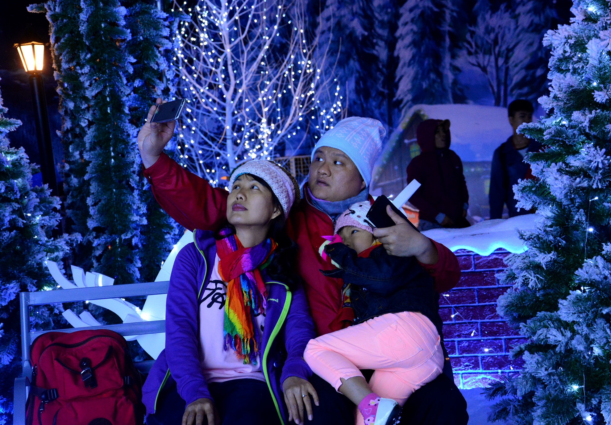 | Gia đình anh Lộc lưu lại những khoảnh khắc đẹp. Anh cho biết, cả nhà đi trung tâm thương mại mua sắm, thấy hấp dẫn liền tranh thủ ghé vào khu Giáng sinh để thưởng thức. |
