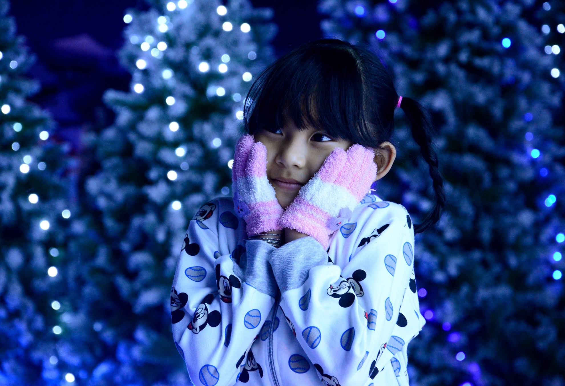 | Nhiều em nhỏ sống quen với cái nóng của TP HCM lần đầu biết thế nào là giá lạnh. |