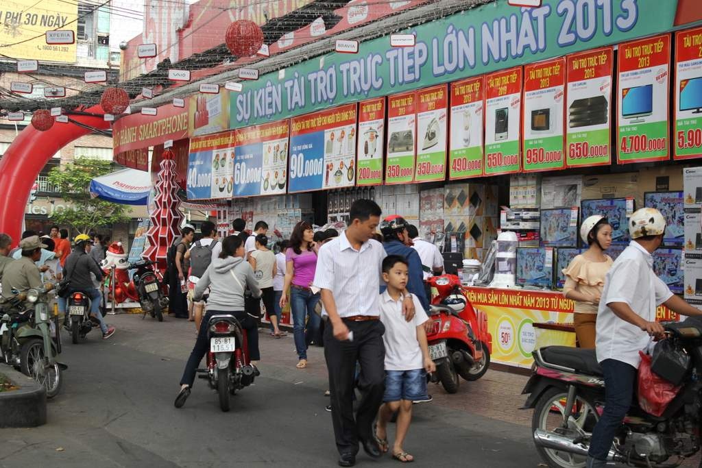 | Khu bán hàng điện tử gia dụng khuyến mãi của siêu thị điện máy Nguyễn Kim (quận1) luôn nhộn nhịp khách hàng đến tham quan mua sắm. Cũng vậy mà đợt bán hàng có tài trợ lớn nhất năm tại đây kéo dài từ ngày 6/12 đến 22/12 đã được gia hạn thêm đến ngày 31/12. |