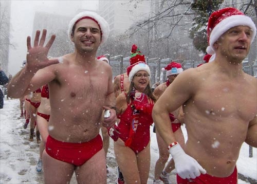 Mới đây, 70 người tại Canada đã khiến cộng đồng mạng bất ngờ khi tham gia cuộc thi chạy bộ giữa tuyết – Santa Speedo Run được diễn ra tại thành phố Toronto. Chặng đua kéo dài đến tận 3 km và toàn bộ người dự thi chỉ được mặc trang phục bơi mỏng manh.