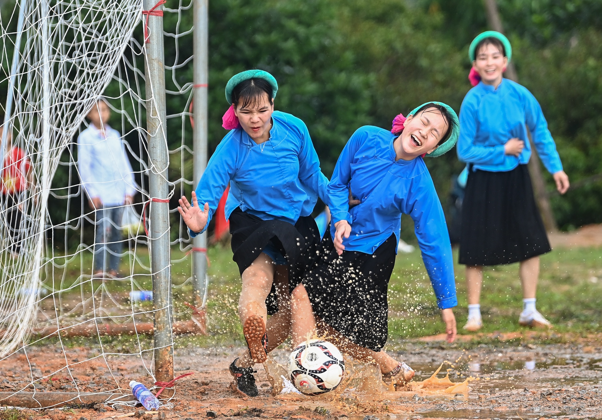 Cơn mưa lớn trút xuống vùng miền núi rừng Đông Bắc không làm giảm được tinh thần thể thao của chị em vốn quen với việc đồng áng, nương rẫy. Những pha vào bóng quyết liệt không kém dân chuyên nghiệp của những cầu thủ vốn quen với việc đồng áng có nhiều phần thú vị.