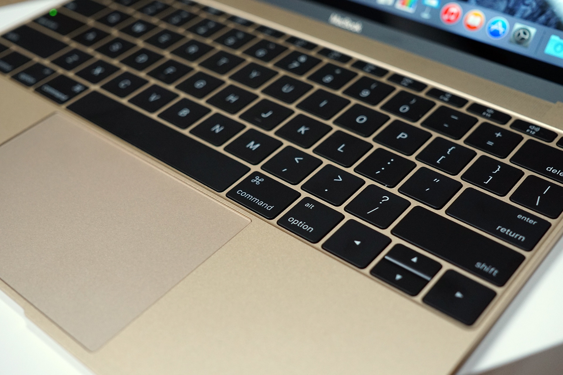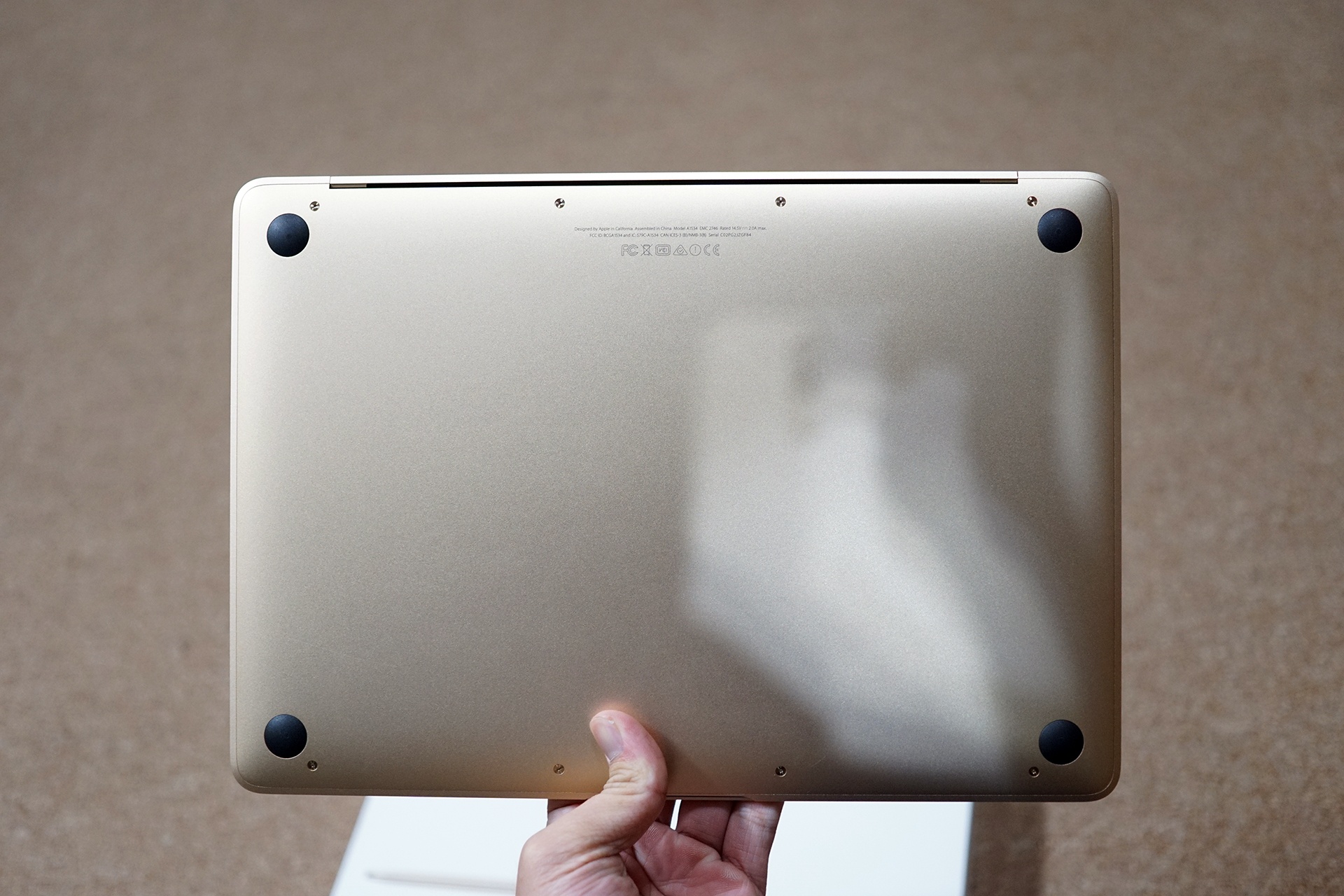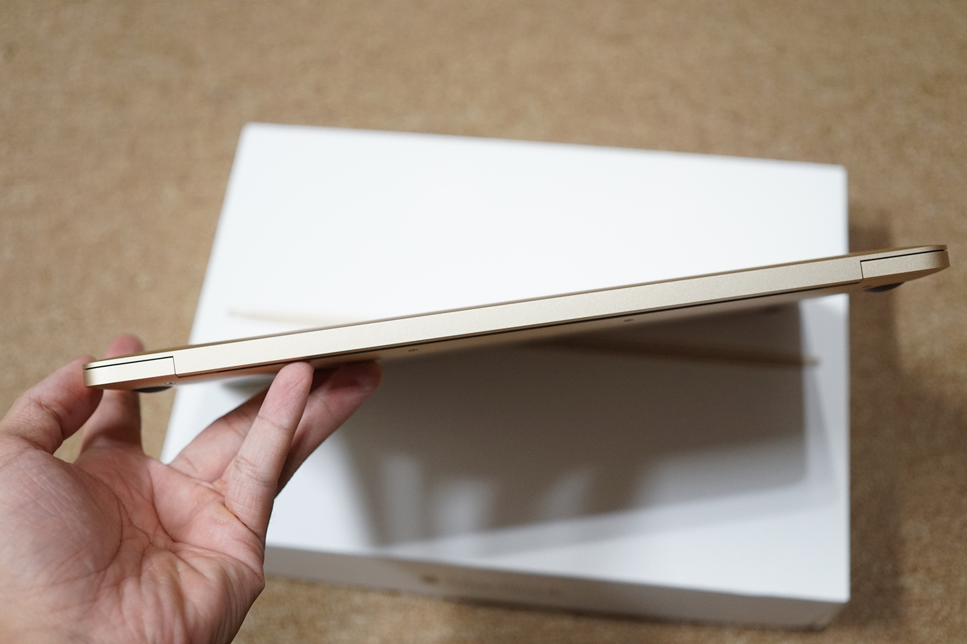 | Vàng gold tương tự như iPhone, iPad là màu sắc mới trên MacBook. Cảm giác khi cầm sản phẩm này giống nhiều các model iOS, nhất là logo quả táo không còn sáng khi mở, máy gọn, mỏng và nhẹ. |