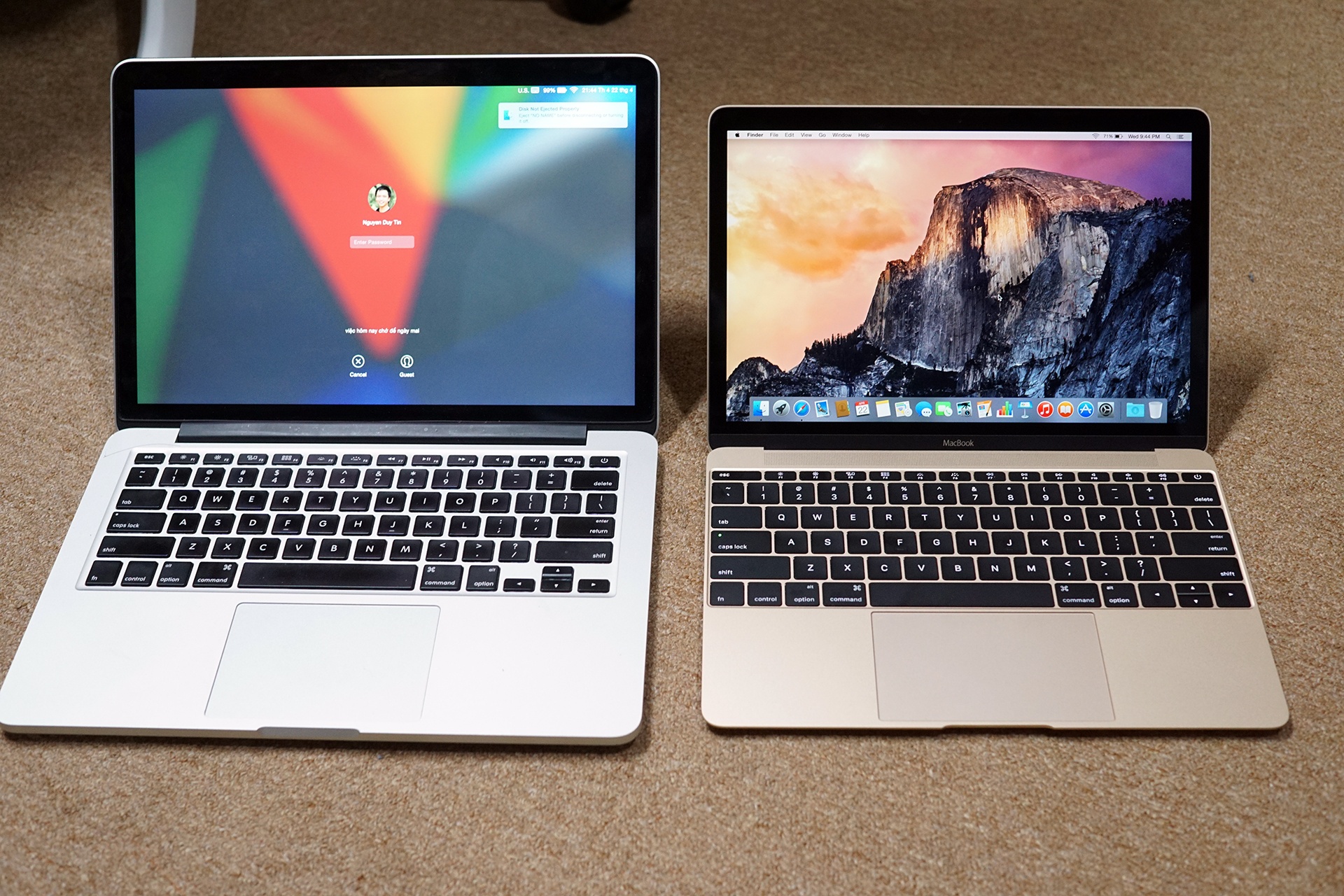 | So với các dòng MacBook 13 inch, MacBook 12 Retina nhỏ gọn hơn nhiều và tỷ lệ màn hình cũng được nới rộng ra từ 16:9 lên 16:10. Dòng MacBook 12 inch dự kiến có mặt ở Việt Nam trong thời gian tới. Giá chính hãng có thể từ 40 triệu đồng. |