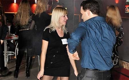 | Phụ nữ tham gia cuộc hẹn hò tình ái phải đeo bảng tên. |