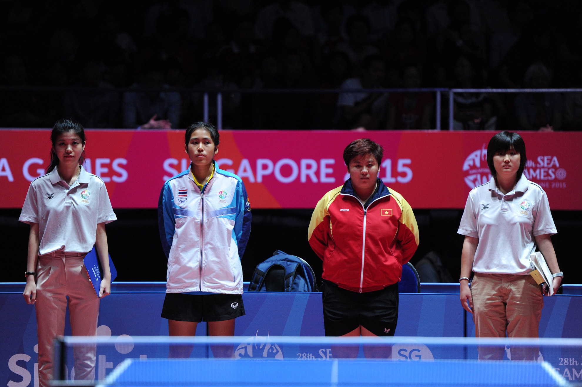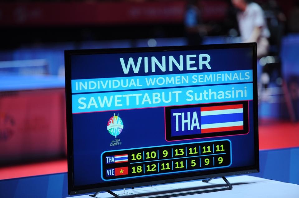| Tưởng như đây sẽ là cơ hội lịch sử cho bóng bàn nữ Việt Nam khi các đối thủ nước chủ nhà Singapore bất ngờ bị loại hết, song tại bán kết, tay vợt số 1 Việt Nam đụng phải "nữ chiến binh" rất mạnh là Sawettabut Suthasini đến từ Thái Lan. |