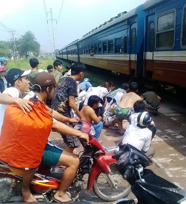 | Đoàn tàu hỏa dừng lại khoảng 20 phút để xử lí sự cố. |